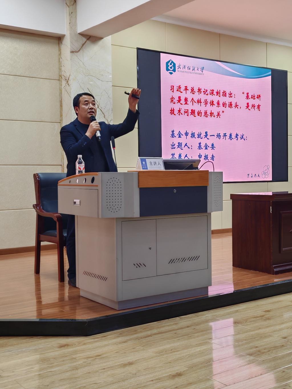 11月27日下午,应科学技术发展院邀请,武汉纺织大学科学与技术发展院副院长、三级教授、博士生导师张本龚同志莅临我校,作国家自然科学基金项目申报辅导专题报告。报告由学校科学技术发展院副院长吴昭君主持,学校自然科学类院部教师代表参会。